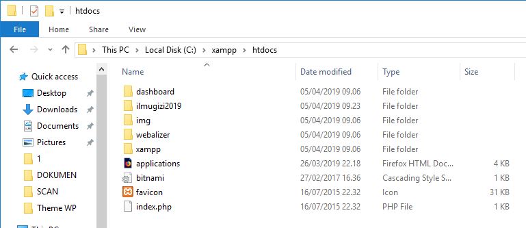 Unzip file Moodle yang telah kamu download, kemudian simpan semua file Moodle kedalam folder C:\xampp\htdocs\