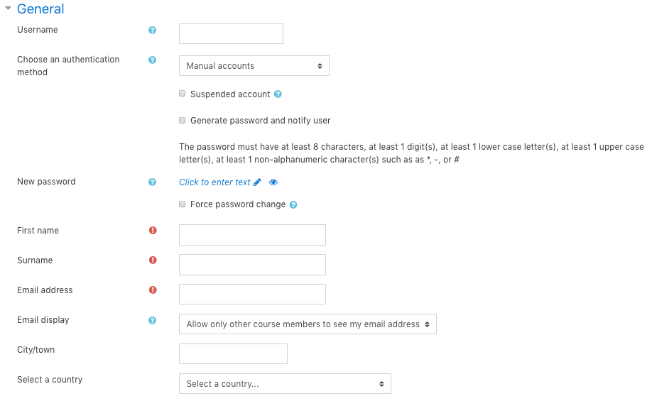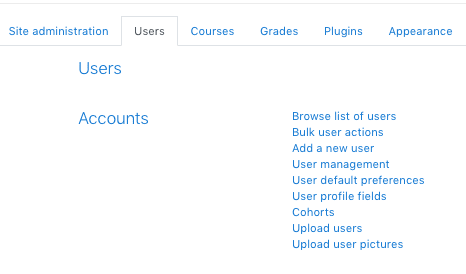 Klik menu Site Administration -> Klik Tabs Users -> Klik link Add a new user.