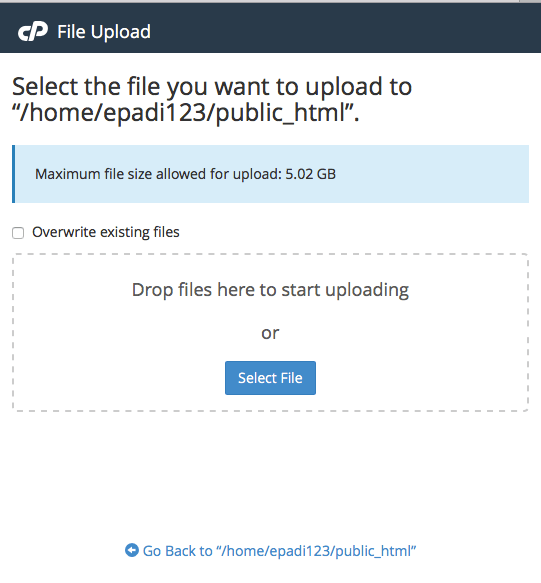Login ke cPanel -> klik link File Manager -> klik menu Upload