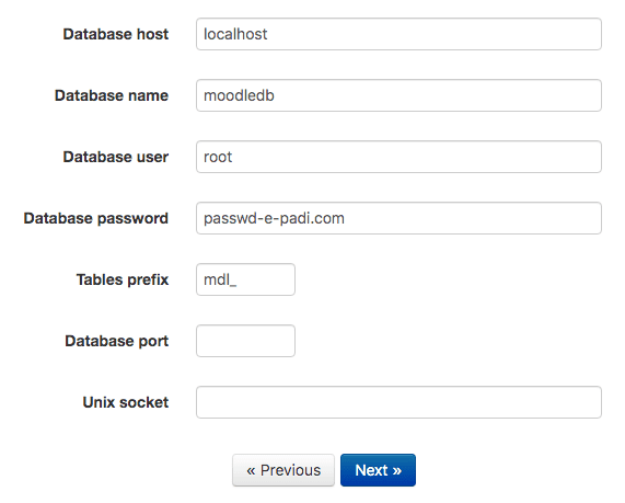 Setelah setting direktori moodle selesai, langkah selanjutnya setting MySQL database