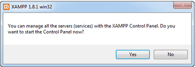 Berikutnya, akan muncul jendela dialog seperti gambar di bawah ini yang menanyakan Anda apakah mau langsung menjalankan aplikasi XAMPP atau tidak. Jika ya, maka klik YES.