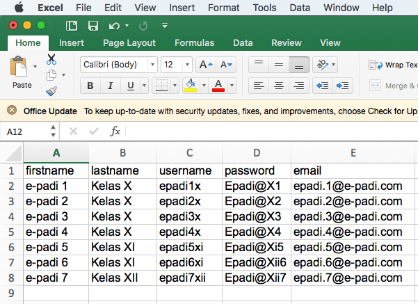 Fitur Upload users, Membuat / menambah user masal dalam format .csv