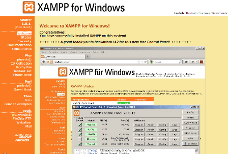 Install XAMPP di Windows sudah selesai, coba ketikkan http://localhost/xampp di address bar. Jika muncul tampilan seperti gambar di bawah ini, instalasi telah berhasil.
