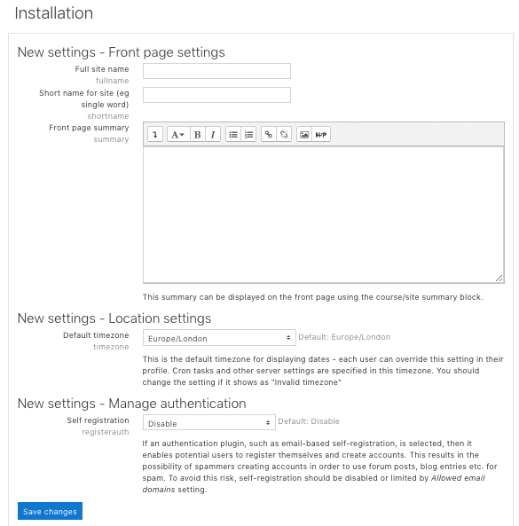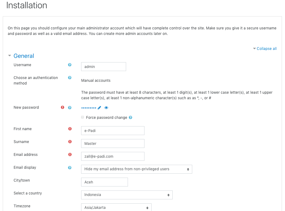 pengaturan dasar elearning moodle - Installation page moodle by Epadi