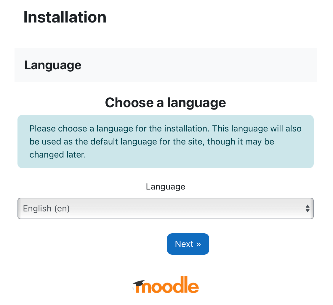 Pilih bahasa yang akan kamu gunakan untuk platform Moodle ini kemudian klik Next.